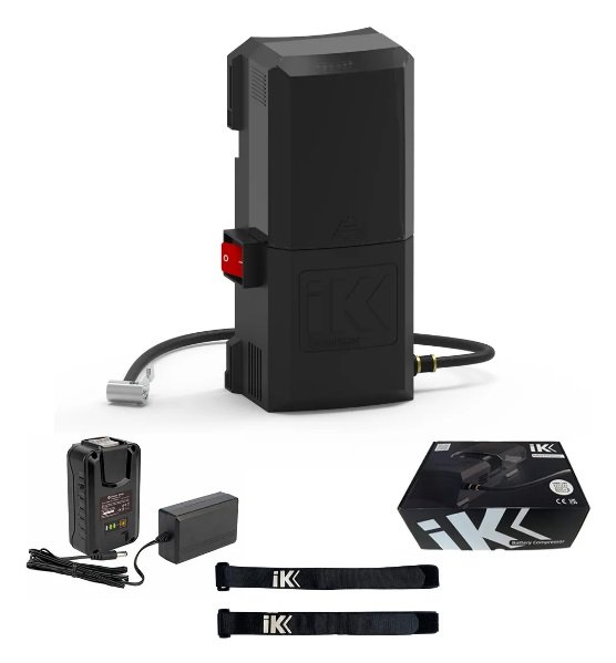 Compresor alimentado por una batería de 18V. Se puede utilizar en los diferentes modelos de la gama IK que disponen del conector de aire comprimido. Mediante el compresor el aparato se presurizará rápidamente hasta los 2,5 bar sin ningún esfuerzo por parte del usuario. Gracias a su gran caudal de aire se puede trabajar de forma continua manteniendo la presión.